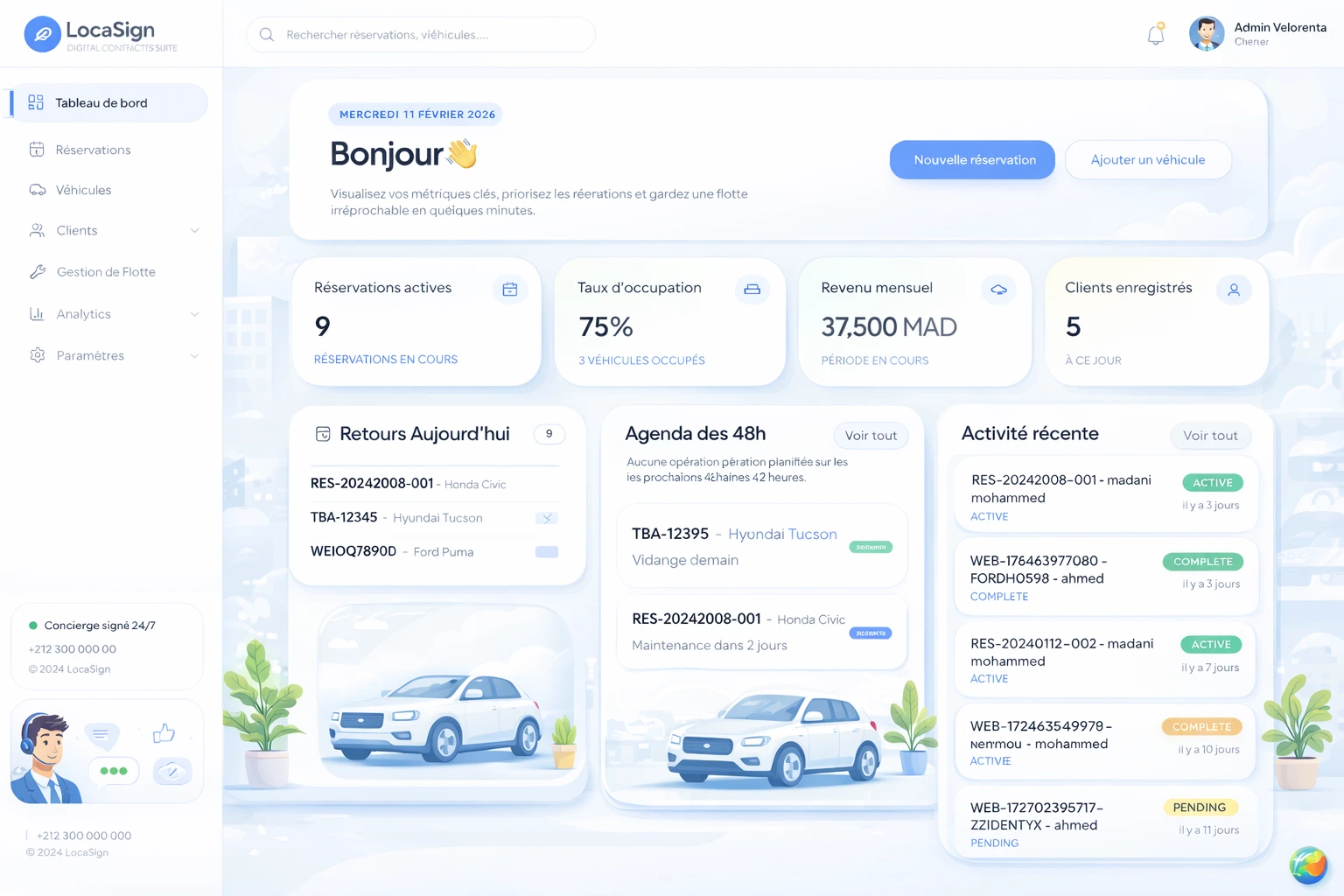 Découvrez concrètement comment Locasign simplifie la gestion des réservations, des contrats électroniques et de votre flotte — sans papier, sans WhatsApp, sans chaos.